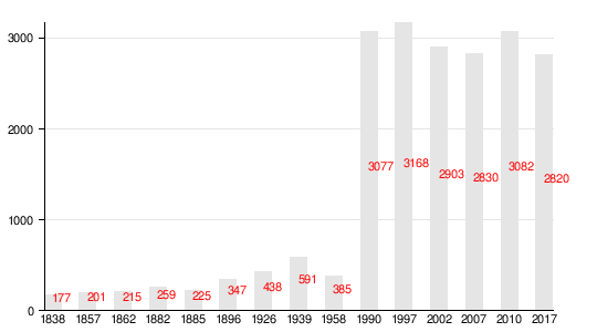 Изменение численности населения за период с 1838 по 2017 год: