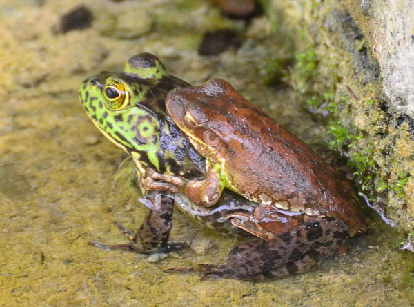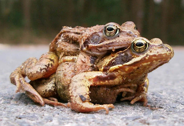 Большинство лягушек в период размножения можно классифицировать как активных и агрессивных. Как правило, лягушки собираются в месте размножения (небольшом озере или болоте), причём самцы обычно прибывают первыми, призывают самок, а также обустраивают территории. Другие самцы-спутники спокойно остаются поблизости, ожидая возможности захватить уже обустроенную территорию другого самца. Самки приплывают несколько позже мужских особей, происходит выбор партнёра и откладываются яйца. Самки уходят, и территории могут переходить от одного экземпляра к другому. Появляется больше самок, и со временем сезон размножения подходит к концу. С другой стороны, агрессивные лягушки встречаются там, где после дождя в засушливых регионах появляются временные лужи. Эти роющие лягушки обычно появляются после сильных дождей и собираются в месте размножения. Туда их привлекает призыв первого самца найти подходящее место, возможно, лужицу, которая образуется в одном и том же месте во время каждого сезона дождей. Собравшиеся лягушки могут кричать в унисон, и начинается бешеная активность, когда самцы пытаются спариться с обычно меньшим количеством самок[2].
