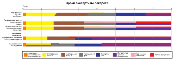 Новые инициативы включают партнерство между правительственными организациями и промышленностью, например, Европейская инициатива по инновационным лекарствам [40]. Управление по контролю за продуктами и лекарствами США создало «Инициативу критического пути» для повышения инновационности разработки лекарств [41]а также обозначение «Прорывная терапия» для ускорения разработки и нормативного рассмотрения лекарство-кандидатов, для которых предварительные клинические данные показывают, что лекарство-кандидат может существенно улучшить терапию серьезного расстройства [42].