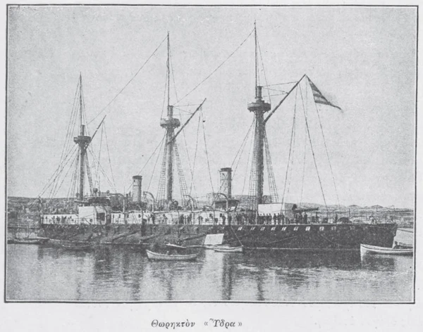 В конце января к Криту была послана эскадра под командованием А. Райнека в составе флагманского броненосца «Идра», лёгкого крейсера «Адмирал Миаулис», войскового транспорта «Микали», паровых канонерок «Алфиос» и «Пиниос» и других более маленьких кораблей, для защиты гонимого турками православного греческого населения острова[2][3].