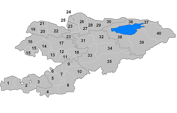 - Жети-Огузский район — (#39, районный центр — Кызыл-Суу)