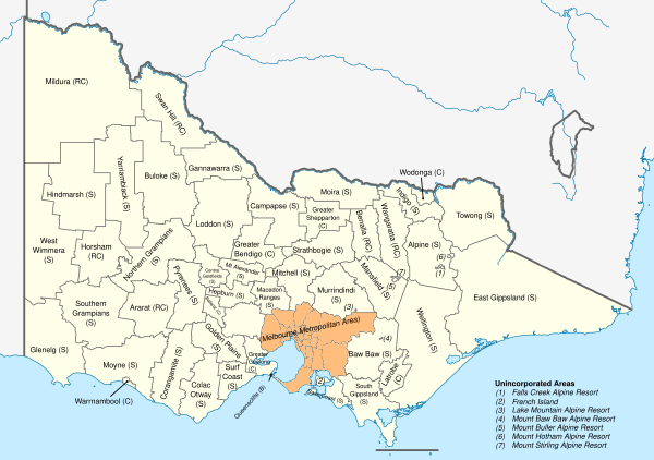 В штате Виктория имеется 79 районов местного самоуправления. Районами местного самоуправления в штате являются: