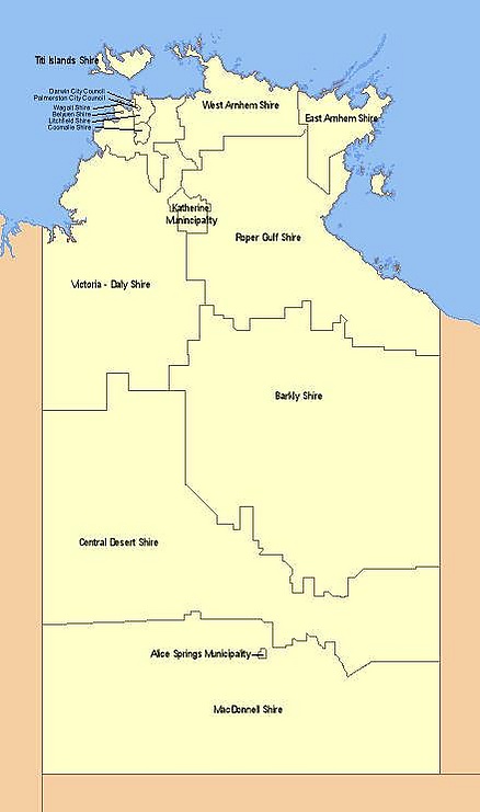 По состоянию на 1 июля 2008 года на территории Северной территории выделялось два типа районов местного самоуправления: