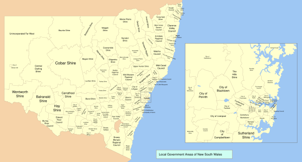 Территория австралийского штата Новый Южный Уэльс законодательно разделена на два типа районов местного самоуправления: