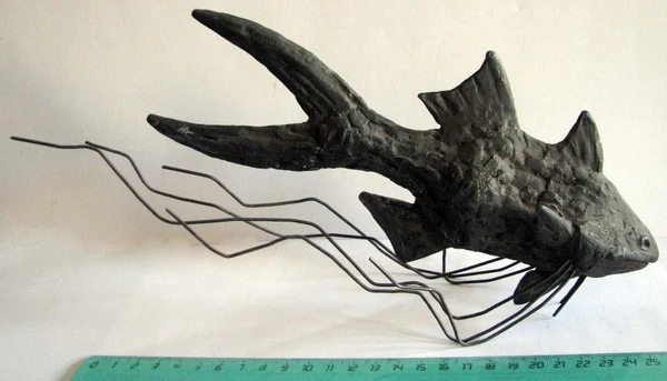 Скульптура выполнена методом литья из металла. Её основная масса вытянута по горизонтали. Длинный хвост разделён пополам. На туловище расположены по два крупных плавника — сверху и снизу. Отростки-плавники, изготовленные из толстой проволоки, служат подставкой для композиции. Размер произведения составляет 13,5×24,6×8,4 см.