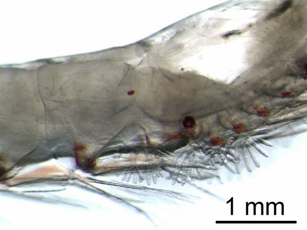 Поток воды в жабрах осуществляется следующим образом. Вода входит в жаберные полости с одного конца тела через щель между карапаксом и телом, а выталкивается с другого, причём направление тока воды может меняться. Проведению воды также способствует движение особых отростков второй пары максилл, совершающих до 200 машущих движений в 1 мин[25].