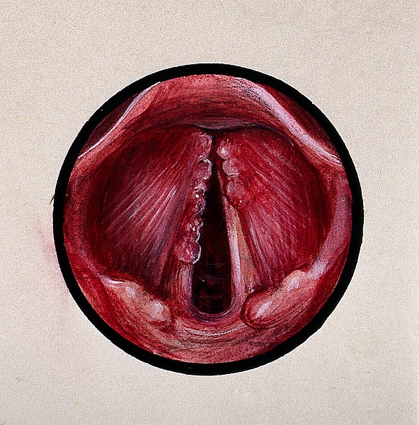 Для ранних стадий рака гортани характерны изменение тембра голоса, осиплость, попёрхивания, парестезии, сухость, ощущение инородного тела в горле, неудобство при глотании. Позже присоединяются боль при глотании с распространением в ухо, дисфагия, гнилостный запах изо рта, кровохарканье, затруднение дыхания, метастазы в шейные лимфатические узлы[12].