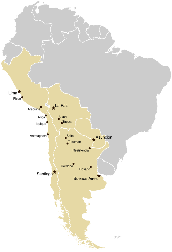 - 2013: Лима (Перу) — Сан-Мигель-де-Тукуман (Аргентина) — Сантьяго (Чили)
