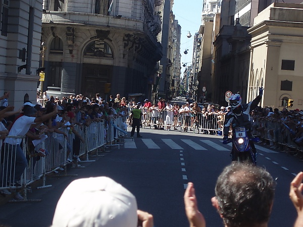 В мотоциклетном зачёте за победу в 6-й раз подряд боролись Марк Кома и Сириль Депре. Их преимущество друг на другом на большинстве этапов составляло менее 3-х минут, и большое влияние на положение в общем зачёте оказали пенализация и проблема с навигацией у француза. Организаторы перенесли на более раннее время старт 4-го этапа, о чём не узнали некоторые участники. Депре вышел к старту вовремя, но вспомнил, что забыл в бивуаке тёплые перчатки (в тот день гонщики пересекали Анды). Вернувшись за ними, француз опоздал на несколько минут к старту, за что по регламенту был оштрафован на 10 минут. На протяжении следующих дней отставание Депре от Комы колебалось в районе этих 10 минут. На достаточно коротком 10-м этапе Депре опередил стартовавших перед ним гонщиков, но заблудился, и по итогам дня проиграл Коме ещё 10 минут. В итоге испанец первенствовал на ралли-марафоне и сравнялся по числу побед с Депре (по 3). До последнего этапа 3-е место занимал чилиец Франсиско «Чалеко» Лопес, выигравший этап после дня отдыха, посвятив победу приезжавшему к нему накануне президенту[3]. На последнем этапе из-за технических проблем он проиграл больше часа и уступил место на подиуме Элдеру Родригишу.