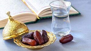 Ифтар после заката стаканом воды и парой фиников, горстью изюма или кураги. Это помогает плавно подготовить ЖКТ к полноценному приёму пищи. Затем можно съесть лёгкое блюдо, например суп или салат, и лишь потом приступать к основному блюду[5].