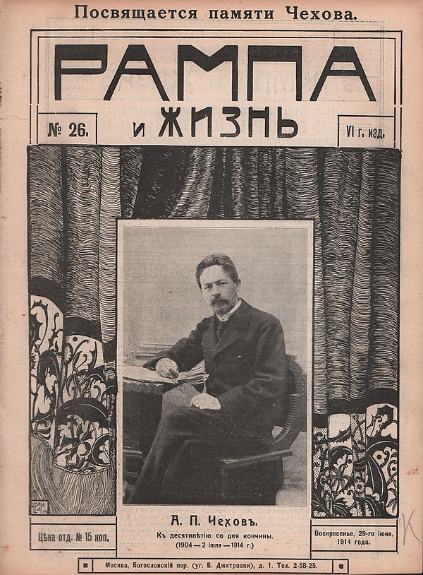 В 1913 году вышло издание журнала «Рампа и жизнь»: сборник «Московский Художественный театр. Исторический очерк его жизни и деятельности». Т. I (1898—1905); т. II (1905—1913). В нём, в частности, напечатаны воспоминания В. И. Немировича-Данченко о поездке за границу. Печатались также пьесы драматургов: М. П. Арцыбашева (Закон дикаря. — М., 1915.)