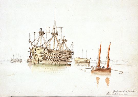 Хуже того, он не был уже линейным в полном смысле слова, имея только 3 корабля, способных сражаться в линии против первоклассного противника. Причем кораблей, эквивалентных 1 − 2 рангу, не имел вообще. Типичным был малый 64-пушечный, который даже в сравнении с номинально равными кораблями других флотов, имел минимальные размеры.