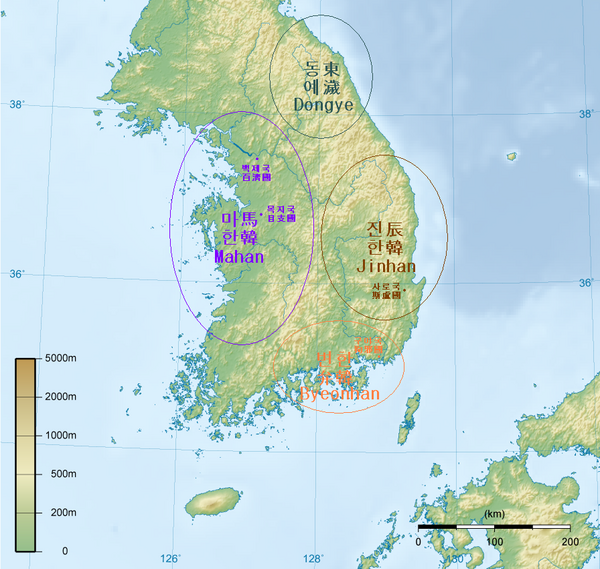 Это период между падением Древнего Чосона в 108 году до н. э. и падением Четырёх китайских округов в 313 году в южнокорейской историографии называется периодом Самхан. К концу этого периода на Севере образовалась Империя Когурё а на юге государства Пэкче, Силла и племенной союз Кая.