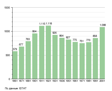 Население составляет 1085 человек (2008 г.), плотность населения составляет 155 чел./км². Занимает площадь 7 км². Почтовый индекс — 24060. Телефонный код — 035.