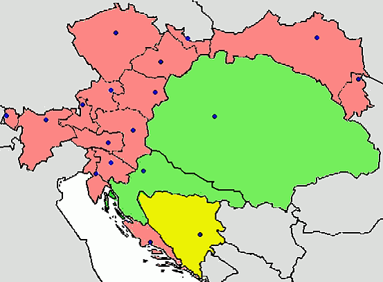 Остальные территории, населённые разделёнными народами, попали в состав уже существующих или новообразованных государств. Юридически распад империи был оформлен в Сен-Жерменском договоре с Австрией, который также выступал в качестве мирного договора после Первой мировой войны, и в Трианонском договоре с Венгрией.