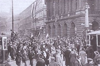 28 октября Австро-Венгерское правительство направило Антанте ноту, в которой сообщалось о возможности капитуляции империи[1]. Нота была немедленно обнародована имперским правительством по всей стране, в том числе и в Праге. Люди восприняли написанное как окончательное завершение боевых действий, хотя сражения ещё шли, и вышли на улицы Праги, устроив торжества. Чешский национальный комитет воспользовался случившимся и бескровно перенял власть в городе. В первую очередь под контроль были взяты все склады с провизией, затем прошли успешные переговоры с командующим местным австро-венгерским гарнизоном Дзанантони, чтобы он не предпринимал силовых действий.