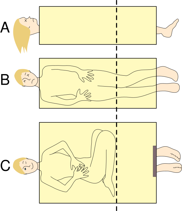 Классическое «Распиливание женщины» имеет два основных варианта проведения трюка. Главное отличие между ними, как видно из рисунков, в количестве привлекаемых ассистенток. Но в обоих случаях порядок действий похож.