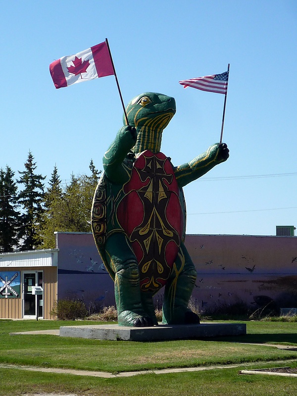 В приграничном канадском городе Буассевен (Манитоба) одной из достопримечательностей является скульптура западной расписной черепахи, «Черепаха Томми», весом 4500 кг. Статуя была создана в 1974 году в честь канадского черепашьего дерби, фестиваля, включающего в себя черепашьи гонки, который проходил в период с 1972 по 2001 год[203].