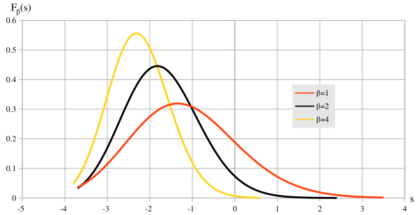 где — наибольшее собственное число случайной матрицы стандартного (для компонентов матрицы ) гауссова ансамбля: при β=1 — ортогонального, при β=2 — унитарного, при β=4 — симплектического. Сдвиг используется, чтобы центрировать распределение в точке 0. Множитель используется, поскольку стандартное отклонение распределения масштабируется как .