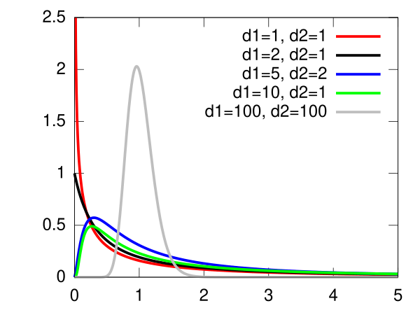 - называется распределением Фишера (распределением Снедекора) со степенями свободы и . Пишут .