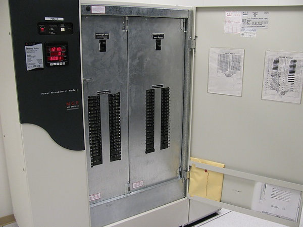 В центрах обработки данных для питания нескольких шкафов серверов требуются крупные распределители питания. Каждый серверный шкаф или даже ряд шкафов может нуждаться в нескольких контурах с высоким током, зачастую от различных фаз входного питания или отдельных ИБП. Автономные шкафные распределители питания — это завершённые устройства, которые включают в себя главные автоматические выключатели, отдельные автоматы по зонам и панели мониторинга мощности. Внутри шкафа предусмотрены распределительные шины для нейтрали и заземления. Верхние и нижние панели со штампованными отверстиями обеспечивают безопасность прокладки кабелей[6].