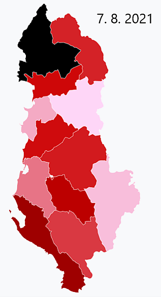 | COVID-19 случаев в Албании () Смертей Выздоровлений Заболевших Мар Мар Апр Апр Май Май Июн Июн Июл Июл Авг Авг Сен Сен Окт Окт Ноя Ноя Дек Дек Янв Янв Фев Фев Мар Мар Апр Апр Май Май Июн Июн Июл Июл Авг Авг Сен Сен Окт Окт Ноя Ноя Фев Фев Мар Мар Апр Апр Май Май Июн Июн Июл Июл Авг Авг Сен Сен Окт Окт Ноя Ноя Дек Дек Янв Янв Фев Фев Мар Мар Последние 15 дней Последние 15 дней | ||||