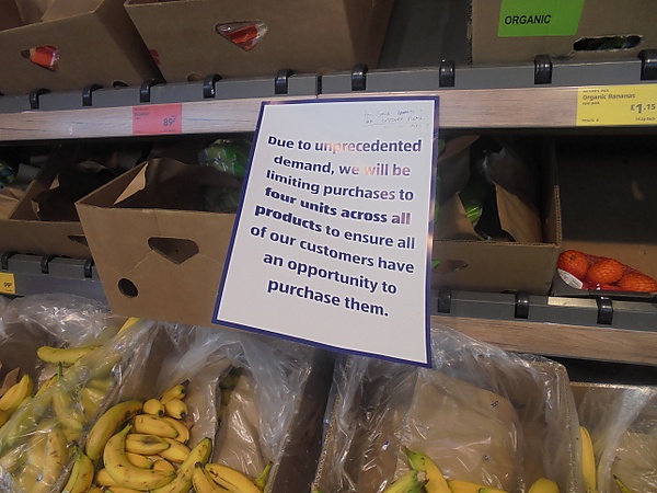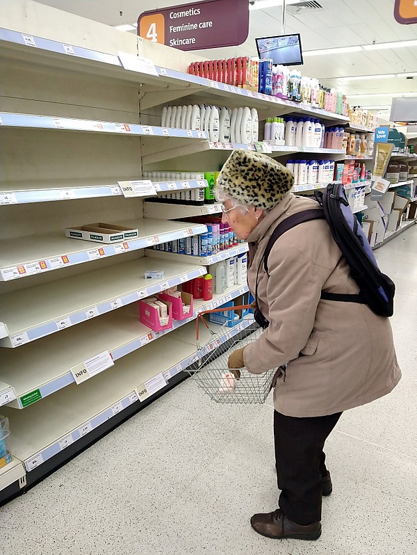 Одни супермаркеты и магазины отреагировали ограничением количества покупок популярных товаров, другие —устанавливали общий лимит по всему ассортименту[161][162]. Sainsburys объявил 18 марта, что они введут специальный час покупок для пожилых и нетрудоспособных клиентов, а также предоставят им приоритет для онлайн-поставок[163]. Другие супермаркеты, такие как Iceland and Morrisons, также приняли определённые меры[164]. 21 марта в Sainsbury также объявили, что они будут предоставлять выделенные часы медицинским работникам, пожилым клиентам и другим уязвимым группам населения: три утра в неделю[165].