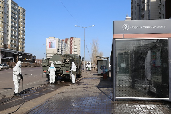 С 19 марта на границе нескольких областей Казахстана, вокруг ряда крупных населённых пунктов были размещены круглосуточные санитарные посты[51][52][53].