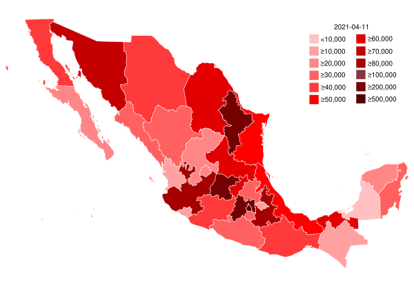 В этой статье описывается распространение коронавирусной инфекции COVID-19 в Мексике. По состоянию на 11 апреля в Мексике было зарегистрировано 4219 случаев инфицирования, и 273 смерти от этого заболевания[2].