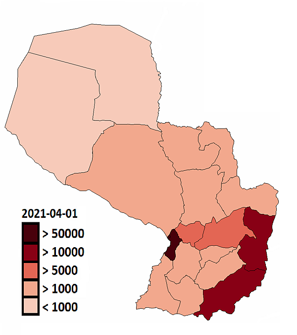 - 7 марта: первый случай был подтвержден в Асунсьоне. Пациент — 32-летний мужчина, прибывший из Гуаякиля, Эквадор[12][13].