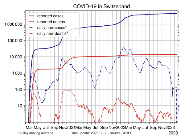 - Coronavirus Switzerland updates and news Архивная копия от 8 апреля 2020 на Wayback Machine. Switzerland in Coronavirus Global international portal. Available in English, French, German and more.