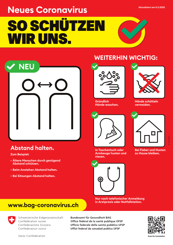 6 марта 2020 года Федеральный совет объявил об «изменившейся стратегии» с упором на защиту наиболее уязвимых лиц, то есть пожилых людей и лиц в зоне риска[34].