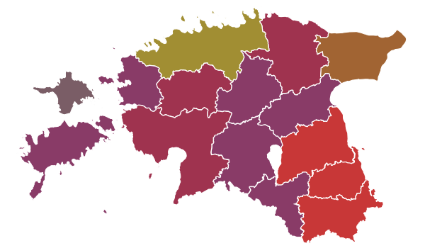 Весьма сильны региональные различия. Так, больше всего заболевших в Таллине и столичном регионе, который еще называют «большим Таллином» (это крупнейший уезд страны — Харьюмаа — где проживает около трети всего населения Эстонии). Однако, самая сложная обстановка на острове Сааремаа (самое большое число заболевших на 10000 человек населения - 95,4).[2][4][5]