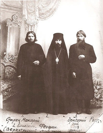 В 1903 году приехал в Петербург к ректору духовной академии епископу Сергию (Страгородскому), познакомился с инспектором Санкт-Петербургской духовной академии архимандрит Феофан (Быстров), а также и епископом Гермогеном (Долгановым)[10]. А в 1905 году Распутин, оставив семью, обосновался в Петербурге[5][7][8].