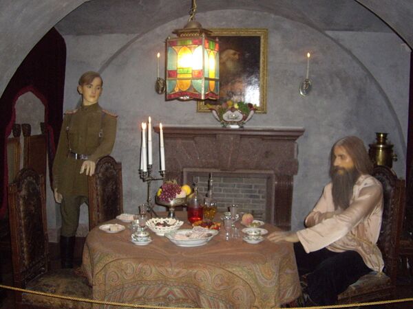В гостях Распутина угостили красным вином и пирожными, отравленными цианистым калием, вреда это ему не причинило (существуют объяснения, что цианид в пирожных был нейтрализован сахаром или высокой температурой при приготовлении в печи). Тогда Юсупов выстрелил Распутину в спину, ранение оказалось не смертельным, Распутин очнулся, попытался задушить Юсупова. Вбежавшие в этот момент остальные заговорщики стали добивать Распутина, но тот всё же выбрался из дворца, попытался перелезть высокую стену сада, но был пойман убийцами. Распутина связали, отвезли на автомобиле к Неве в полынью[42].