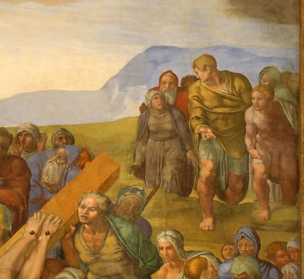 Последняя фреска Микеланджело… знаменует собой новый рубеж, новый решительный поворот в его творчестве… выразившемся в решительном отказе от идеалов его юности. На смену объективному, пребывающему вне человека содержанию, на смену наблюдениям над природой или идеализации природы приходит живописное воплощение субъективного художественного переживания, воспринимаемое как высший закон: отныне Микеланджело пытается изобразить не событие, каким оно было или каким оно может быть инсценировано им наиболее эффектно в художественном отношении, но ту ценность, к которой испытывает влечение его духовный мир[7]