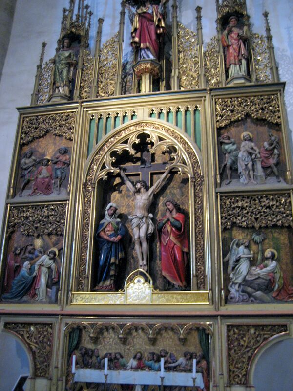 Надалтарный крест — элемент декоративного убранства храма, вешался на стену над алтарём либо свободно крепился к потолку над ним. Более характерен для западных храмов.