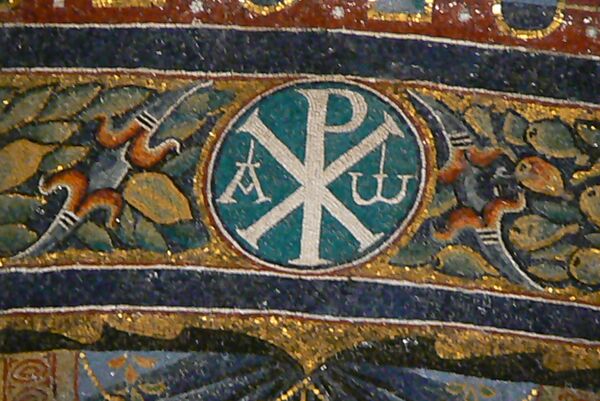 В самых ранних композициях типа «Поклонение имени Иисуса» изображали простой крест как солярный символ с монограммой Христа (ХР (Хи-Ро). По обе стороны креста — два оленя, пальмы или павлины в ветвях «Мирового дерева». На мраморной плите из церкви Сант-Аполлинаре-Нуово в Равенне (нач. VI в.) изображена чаша, из которой вырастают две виноградные лозы, на них — два павлина, над чашей показан «крест Константина» (лабарум). На обратной стороне плиты представлена сцена: среди растительных завитков изображение «Даниила во рву львином». На рельефе боковой стенки саркофага в Мавзолее Галлы Плацидии в Равенне (ок. 423 г.) между двумя колонками изображен Агнец на фоне креста. На перекладине креста — две голубки; в основании — условное изображение горы Голгофы, из которой вытекают четыре райские реки. На рельефе другого саркофага (конец V в.) Агнец изображен с крестом и нимбом, в котором читается монограмма Христа «ХР». По сторонам — две пальмы (символ небесной славы). В раннехристианском искусстве, главным образом в произведениях коптов (египетских христиан), общин Сириии, Палестины, распространены изображения креста, в средокрестие которого вписан круглый медальон с образом Агнца, а Христа и двух разбойников изображали без крестов, просто на фоне каменной кладки («Иерусалимской стены»), как это видно на уникальном рельефе дверей церкви Санта-Сабина в Риме. Похожая композиция имеется на одном из столпов алтарного кивория собора Сан-Марко в Венеции и на Пасхальном канделябре римской базилики Сан-Паоло-фуори-ле-Мура. Подобную иконографию объясняют влиянием учения монофизитов (о единственной, божественной природе Христа). Согласно этому учению, божественное тело Христа не могло находиться на кресте и распят был не Христос, а его двойник. Однако с осуждением монофизитов на Вселенском соборе в Халкидоне в 451 году в трудах Отцов церкви крест постепенно переосмысливался в качестве эмблемы Воскресения к вечной жизни и триумфа над телесной смертью. Изображение Распятого Иисуса Христа, как правило, скульптурное или рельефное, появилось в конце VII века, после того как Трулльский собор (691—692 годы) запретил изображения агнца на кресте и постановил, чтобы Христа изображали в центре креста человеком, а не агнцем[4][5].