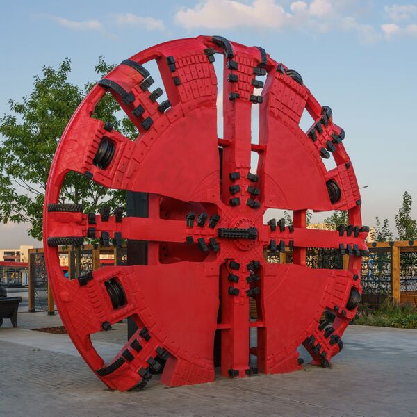 - фрагмент ротора тоннелепроходческого комплекса «Наталия», который, помимо прочих, строил тоннели и к данной станции[23].