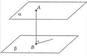 Если две плоскости параллельны, то все точки одной из параллельных плоскостей находятся на одном и том же расстоянии от другой плоскости. Это расстояние равно длине перпендикуляра AB, опущенного из призвольной точки одной плоскости на другую плоскость.
