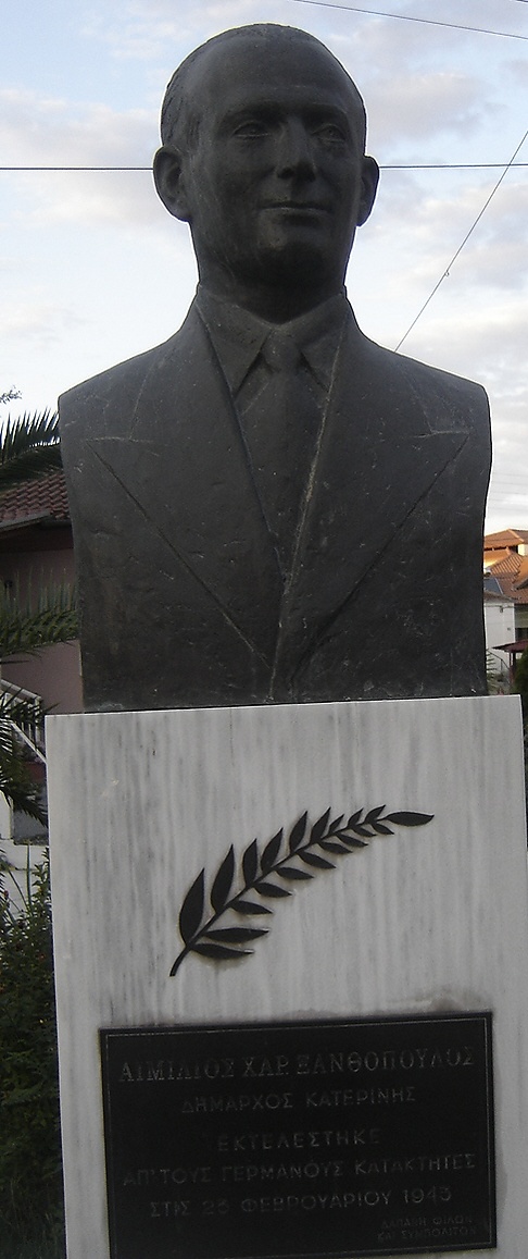 23 февраля и с целью придать своим карательным и превентивным мерам больший вес, немцы арестовали и заключили в вагон с заложниками довоенного мэра Катерини Эмилия Ксантόпулоса. Ксантопулос был известным человеком в городе и во всей Пиерии, до войны состоял в совете директоров шахты Агиоса Димитриоса, и с началом оккупации немцы возложили на него обязанность снабжения шахтёров продовольствием. Бывший мэр, которого немцы задним числом обвинили в коррупции и в поставках продовольствия партизанам и включили в число смертников, был удобной личностью для большего устрашения населения. Ксантопулос в своей последней записке жене писал, что он и сам не знает «откуда пришла эта беда». В тот же день, немцы блокировали Муниципальный рынок Катерини, выборочно мобилизовали 15 мужчин, вручили им лопаты и пешим ходом отправили на железнодорожную станцию. Расстрел заложников состоялся за железнодорожным составом. 15 свидетелей не видели сам расстрел, лишь слышали пулемётные очереди. После чего они получили возможность убедиться, что все заложники, включая мэра, «лежали в луже крови» и приступили к закапыванию трупов. 2 марта, выходящая в Салониках, коллаборационистская газета «Новая Европа» опубликовала заявление военного коменданта Салоник — (островов) Эгейского моря: «греческие бандиты, введённые в заблуждение большевистскими террористами атаковали шахту» и «по этой причине были расстреляны 37 жителей региона», «предупреждаю, германская армия будет и впредь наказывать любое террористическое действие греческих коммунистов»[11].