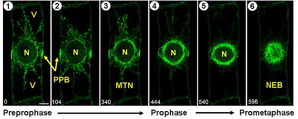 - Образование препрофазной ленты — кольца из микротрубочек, расположенного под плазматической мембраной[18];