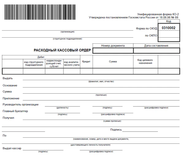 Расходный кассовый ордер