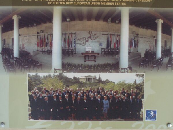 Договор о присоединении был подписан 16 апреля 2003 года в Афинах членами ЕС и десятью присоединяющимися странами. Договор был ратифицирован и вступил в силу 1 мая 2004 года.