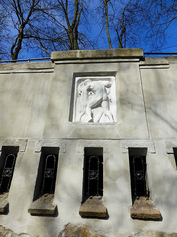 Барельеф из ракушечника работы Станислауса Кауэра. Был создан в 1912—1913 годах и установлен на шлюзе пруда Хаммер—Тайх. Барельеф сохранился до наших дней (район улицы Бассейная и проспекта Мира).