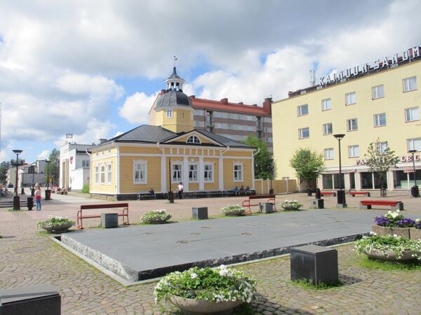 Император Александр I впервые посетил Каяани в 1819 году и выделил денежные средства на строительство ратуши. Ратуша была спроектирована в Управлении зданий общего пользования на основе собственного проекта Каяани. Проект деревянного здания в стиле ампир был создан архитектором Карлом Людвигом Энгелем и инженером Антоном Вильгельмом Арппе. Строительство было завершено в 1831 году. Ратуша является старейшим зданием в центре города[3].