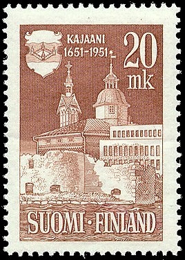 7 июля 1951 года в Финляндии была выпущена специальная почтовая марка номиналом 20 финских марок, посвященная 300-летию города Каяани. На них были изображены замок Каяани (1619—1717), построенный Исаком Расмуссоном на острове Амманкоски в 1604—1619 годах, электростанция Койвукоски, церковь Каяани Якоба Аренберга (1896) и башни ратуши Каяани, спроектированные Энгелем[4].