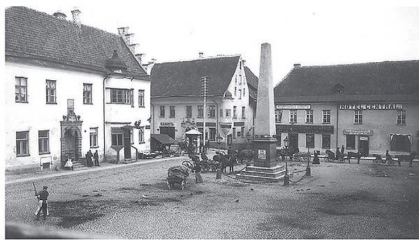 В 1874 году на площади была возведена двухметровая мемориальная колонна из бетона в честь 200-летия Петра Великого. В 1922 году колонна была снесена новыми властями.