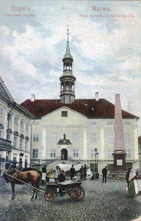 Одна из старейших площадей города. Название получила по нарвской Ратуше, располагающейся на площади. Здание ратуши было возведено в 1668—1671 годах. Архитектором выступил специально приглашённый из Любека Георг Тейффель. Скульптурная группа для портала была выполнена в 1687 году фламандским мастером Г. Миллихом. Мастер Г. Гест изготовил кованые детали, в том числе решетку крыльца. Черепица для крыши была привезена из Амстердама. В 1727 году ратушной башне придали более изящный вид. С 1674 года фронтон ратуши украшали часы, которые ремонтировались в 1740 году. В 1870-х годах в крыльце был устроен небольшой фонтан — город получил водопровод.