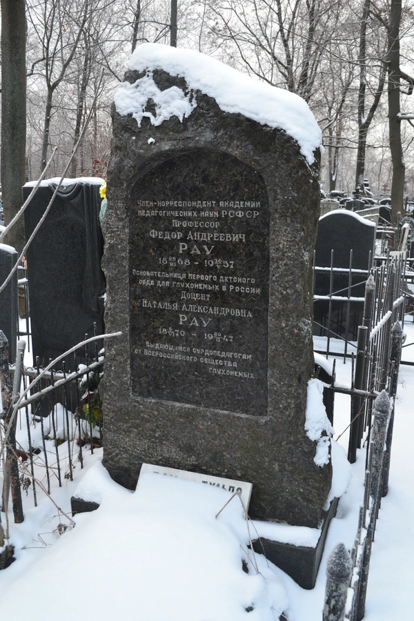 Также содействовал организации училища глухонемых в Туле. До Октябрьской революции проводил Съезды учителей глухонемых, организовывал курсы для матерей и воспитательниц глухонемых детей-дошкольников. В 1918 году открыл специальные классы для глухонемых детей при Арнольдо-Третьяковском училище и филиальное отделение в Даниловском монастыре. В 1922 году Ф. А. Рау работал в институте детской дефективности (основанном В. П. Кащенко) в качестве лектора по сурдопедагогике. С 1925 года являлся профессором по кафедре сурдопедагогики и логопедии на дефектологическом отделении 2-го МГУ.[1]